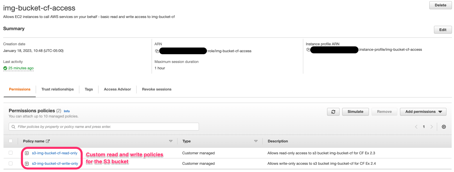 IAM role for EC2 instances (web servers) allowing read + write access to image bucket