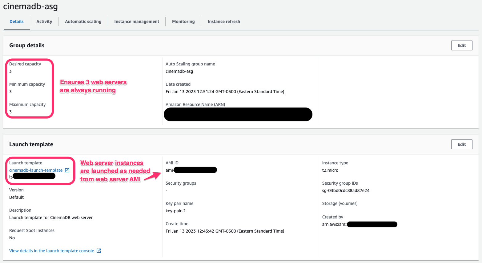 ASG with launch template from web server AMI, ensuring 3 running web servers