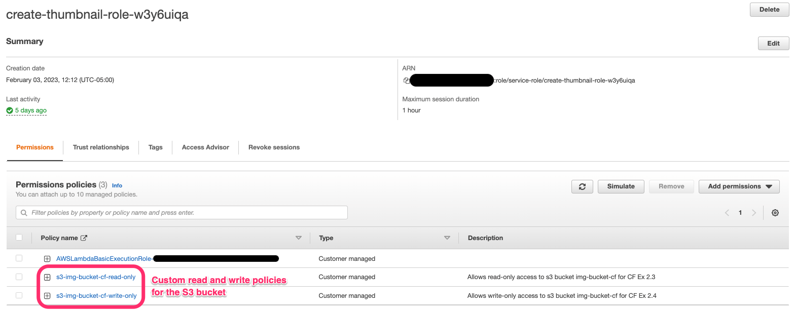 IAM role for Lambda function allowing basic Lambda permission, plus read + write access to image bucket